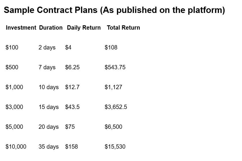 Earnings are automatically credited to users’ accounts each day. A 24/7 customer support team ensures a smooth and reliable experience.